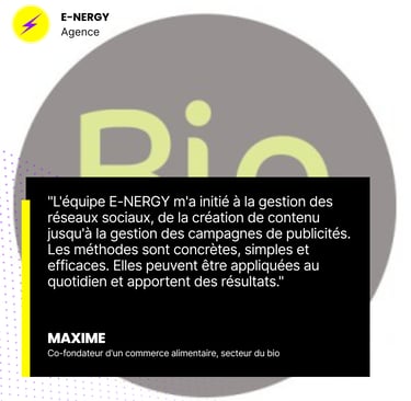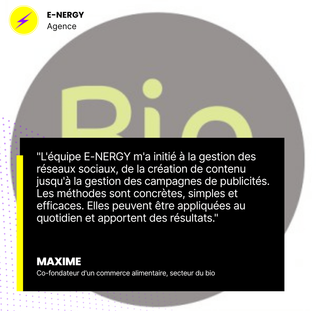 Maxime, co-fondateur d’un commerce alimentaire bio, voulait développer sa clientèle locale. Il avait besoin de conseils concrets et pratiques pour utiliser efficacement les réseaux sociaux et les campagnes publicitaires.